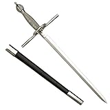 Not in the mood for your tpyical dagger or long sword? Try out this 21 1/2 inches long short sword then. The blade is 14 1/2 inches of stainless steel. Cast metal is the material used to construct the guard and pommel, with a wire wrapped handle in between. The black leather scabbard features poilished metal fittings to make sure it fits snuggly and securely around the blade.